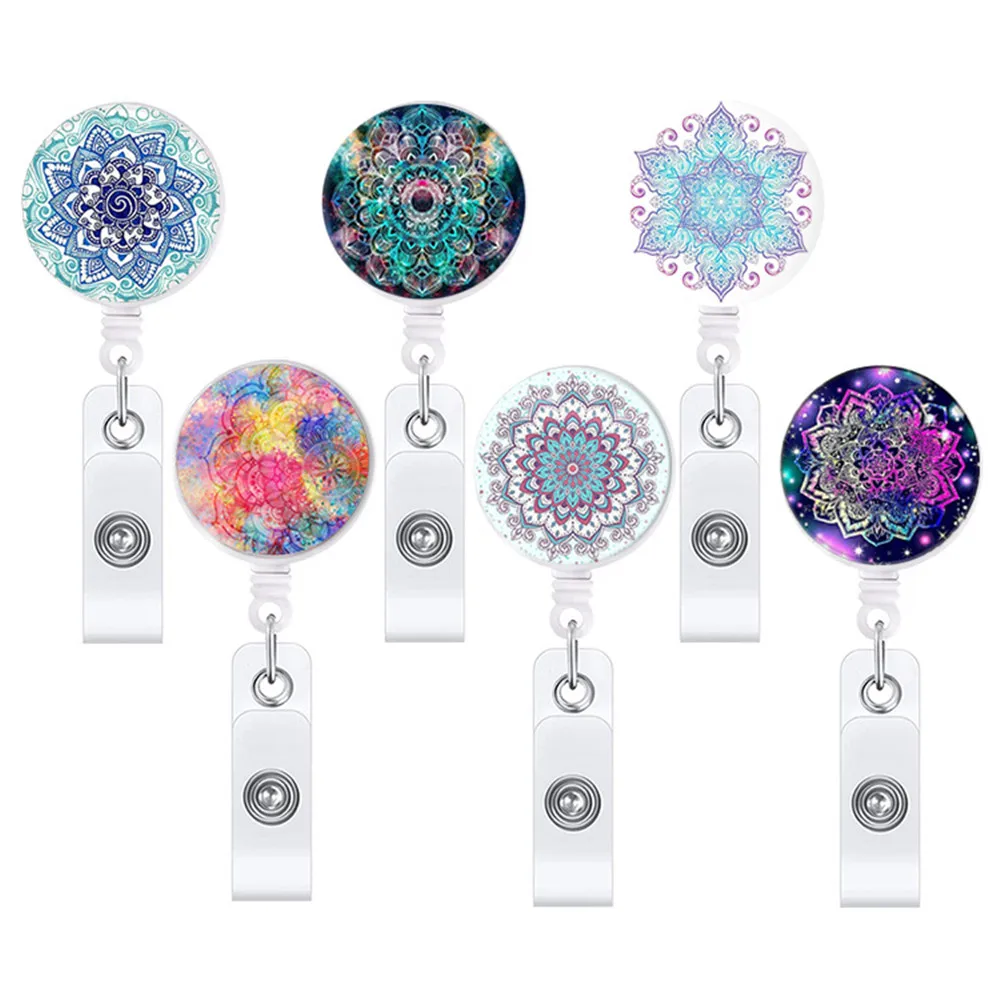 Flash Sale Soporte de tarjeta de identificación con flor de Mandala, Clip retráctil, carrete de insignia, enfermera, Doctor, exposición de estudiantes, Clips para tarjetas de identificación AjXNegWrp7x